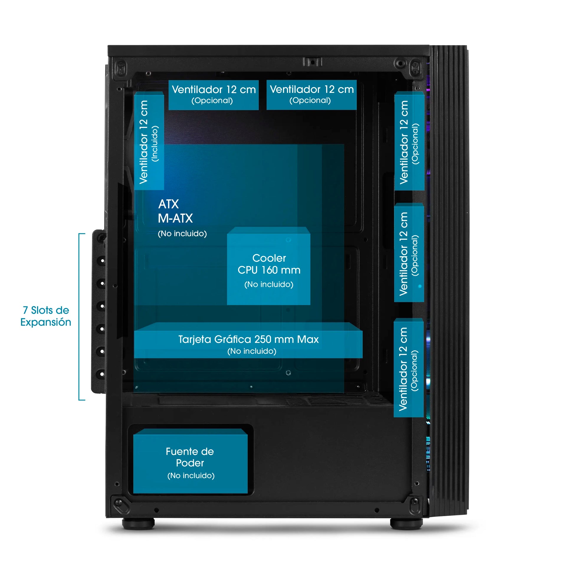 | Soporte para Ventiladores | Top | 2 Cooler de 12 (Opcional) |