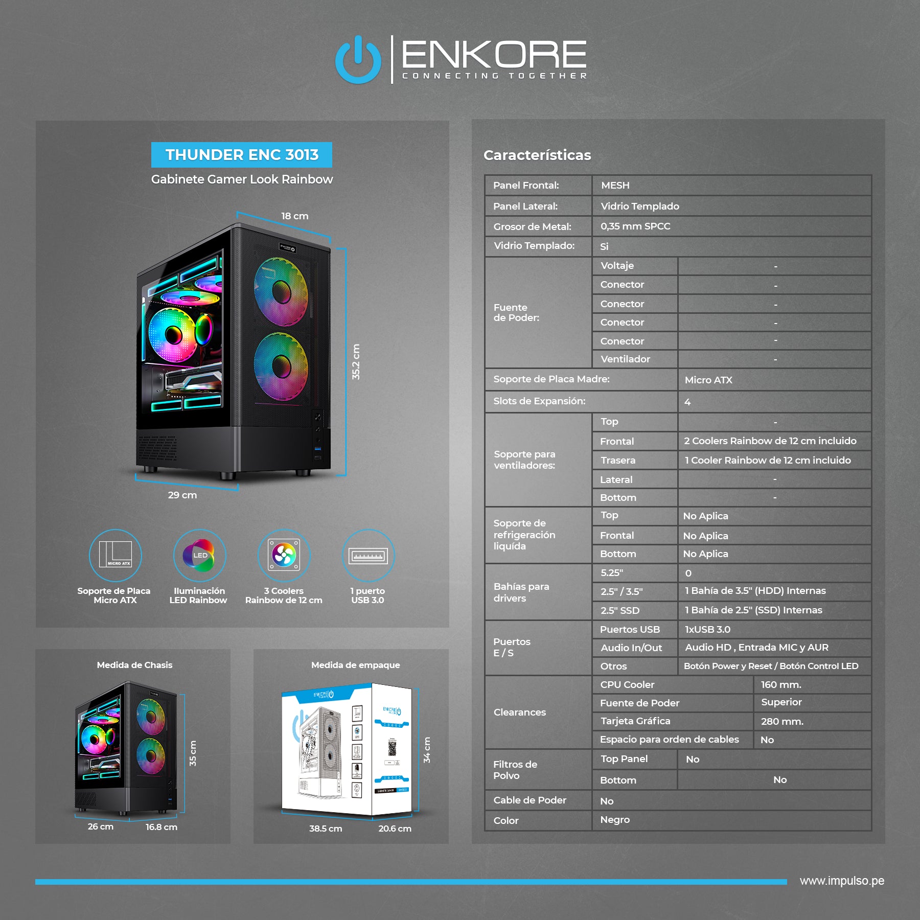 | Grosor de Metal | 0.35 SPCC | |