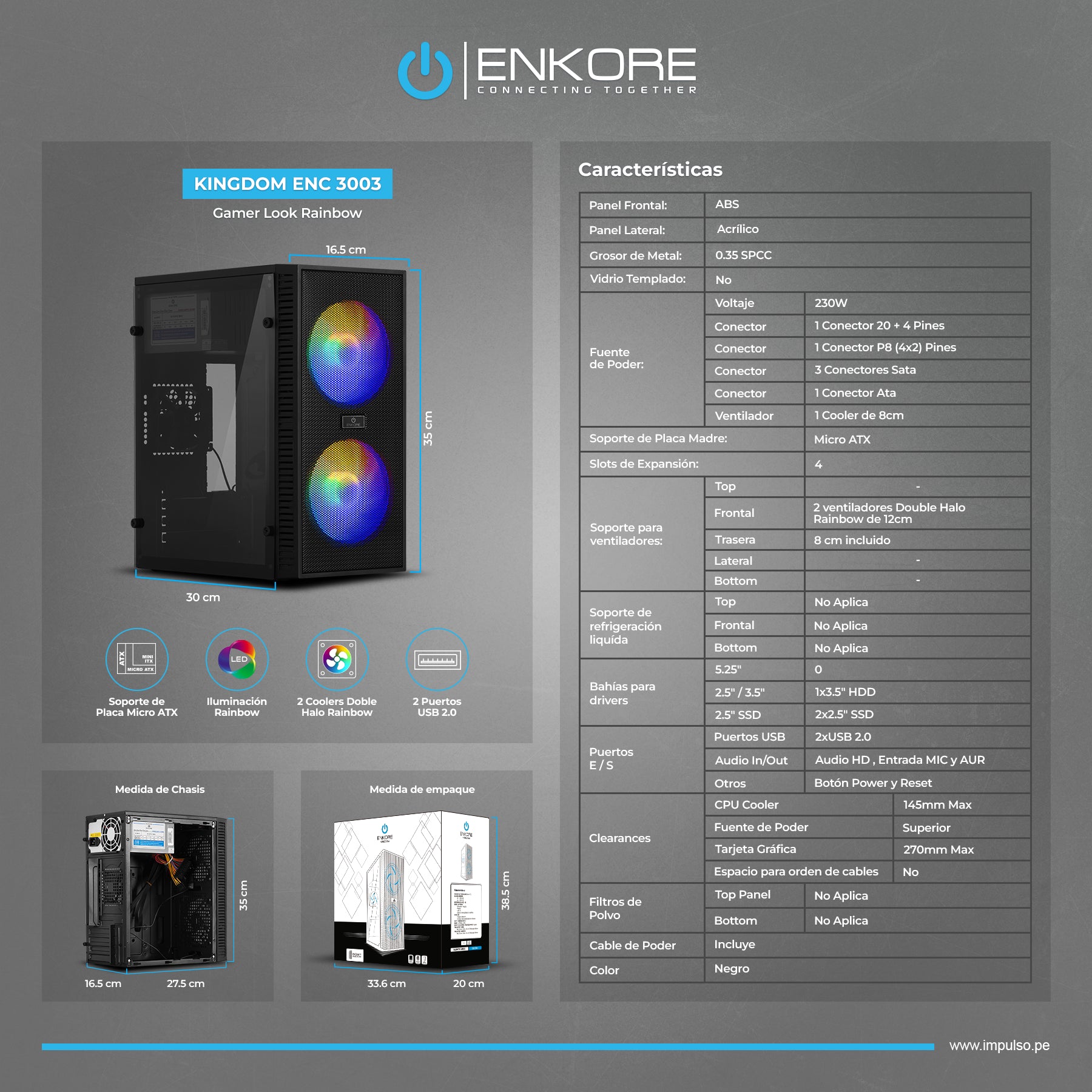 Gabinete Gamer MATX 2 Coolers Rainbow con Fuente de 230W Kingdom ENC 3003