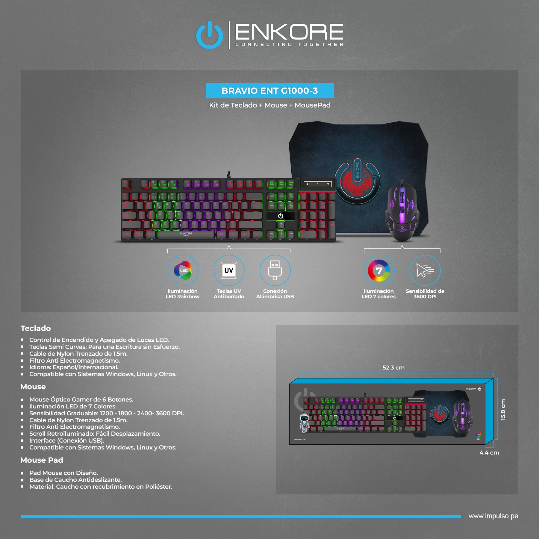 Kit Gamer 3 en 1 Teclado+Mouse+Pad Bravio ENT G1000-3