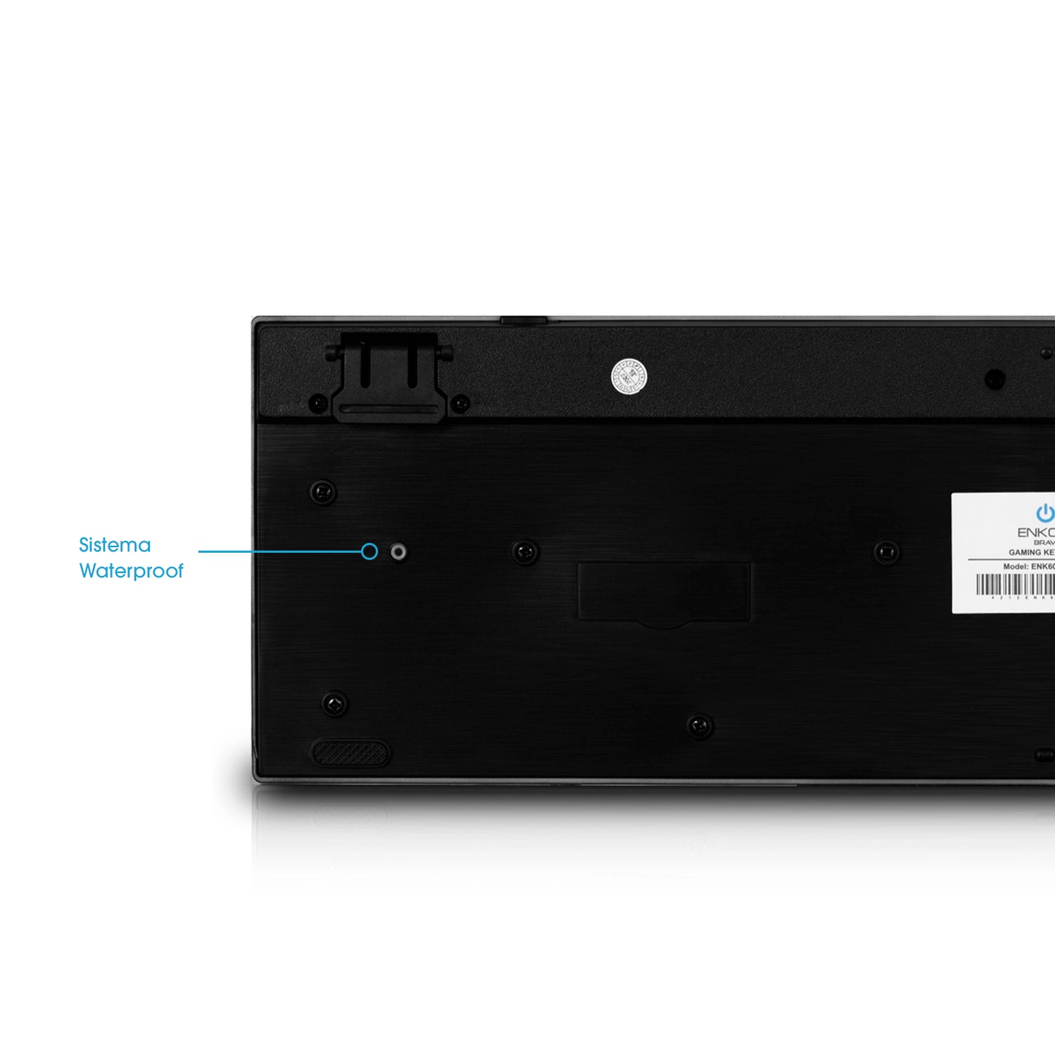 El teclado Enkore Bravio incorpora un sistema waterproof que protege su interior contra derrames accidentales de líquidos, asegurando una mayor durabilidad y confianza en el uso diario.
