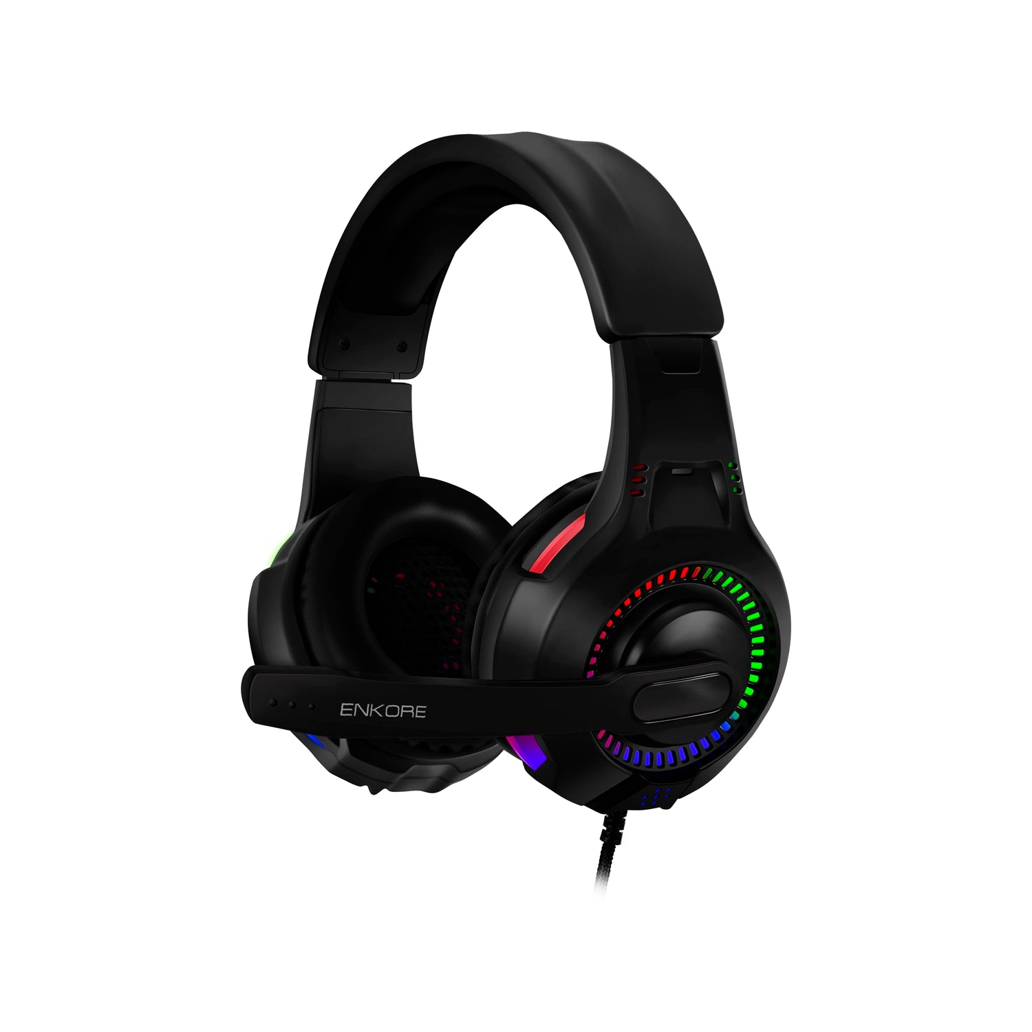 Audífonos con diseño over-ear, almohadillas acolchadas e iluminación LED multicolor que brindan una experiencia de audio clara y cómoda para largas jornadas de juego o uso diario.