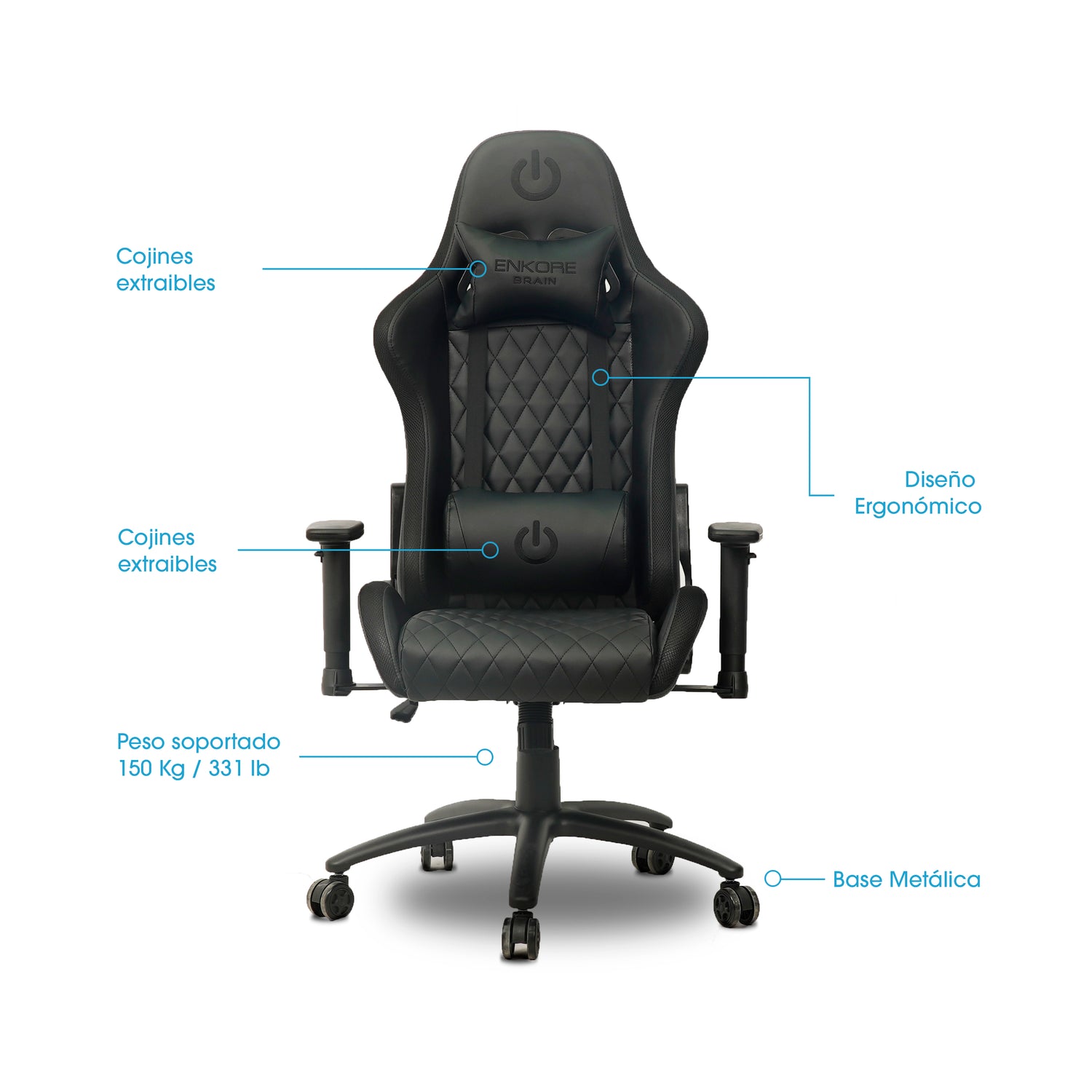 La silla gamer ENKORE está pensada para ofrecer una experiencia cómoda y estable durante horas de juego, estudio o trabajo frente al escritorio. Su diseño ergonómico se adapta al cuerpo, ayudando a mantener una postura correcta y reduciendo la fatiga en sesiones prolongadas.