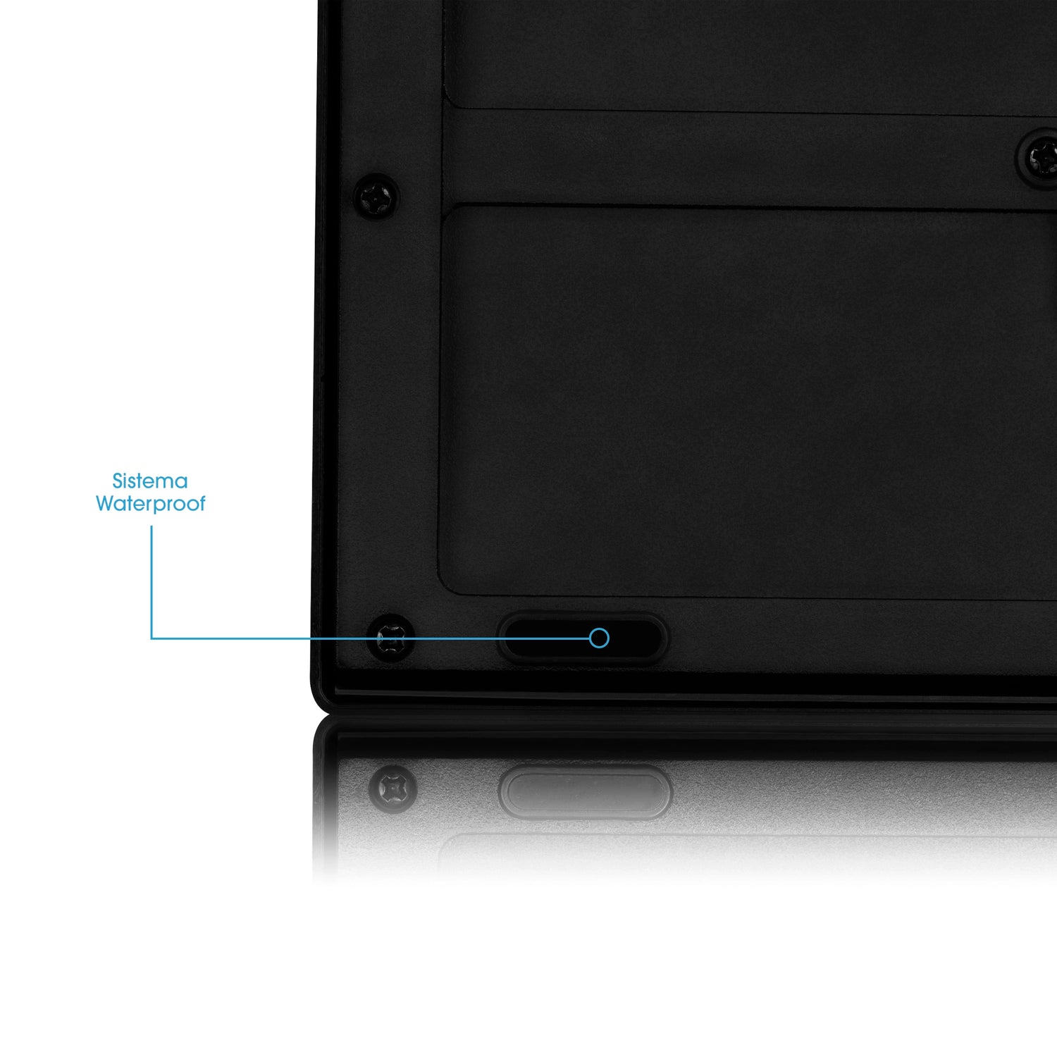 Sistema waterproof que protege su interior contra derrames accidentales de líquidos, asegurando una mayor durabilidad y confianza en el uso diario.